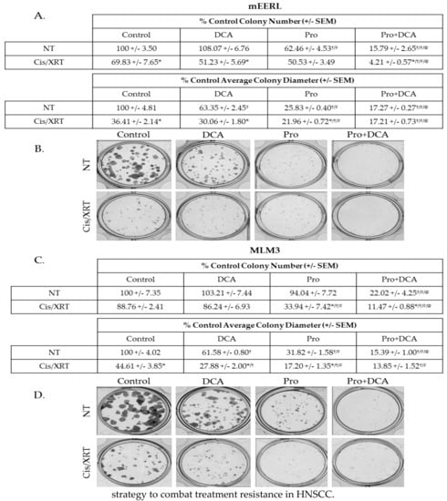 2.6. The Combination of Propranolol and DCA Enhances the Effects of Standard of Care therapeutic Modalities and Sensitizes Resistant Cells to Cisplatin and Radiation.