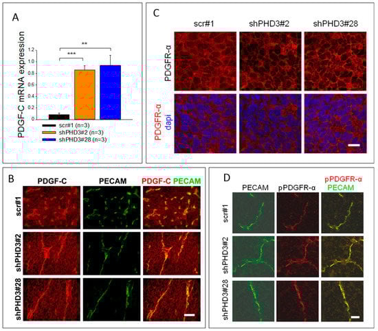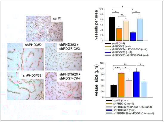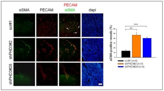2.5. The shPHD3 Vessel Phenotype Is Rescued in shPHD3+shPDGF-C Tumors