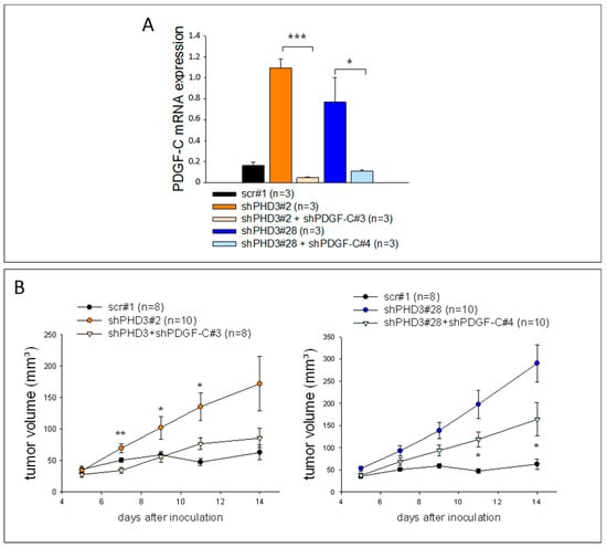 2.4. Knock-Down of PDGF-C in shPHD3 Tumors Reduces Tumor Growth