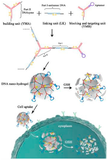 - Li, J.; Zheng, C.; Cansiz, S.; Wu, C.; Xu, J.; Cui, C.; Liu, Y.; Hou, W.; Wang, Y.; Zhang, L. Self-assembly of DNA nanohydrogels with controllable size and stimuli-responsive property for targeted gene regulation therapy. J. Am. Chem. Soc. 2015, 137, 1412–1415. [Google Scholar] [CrossRef] [PubMed]