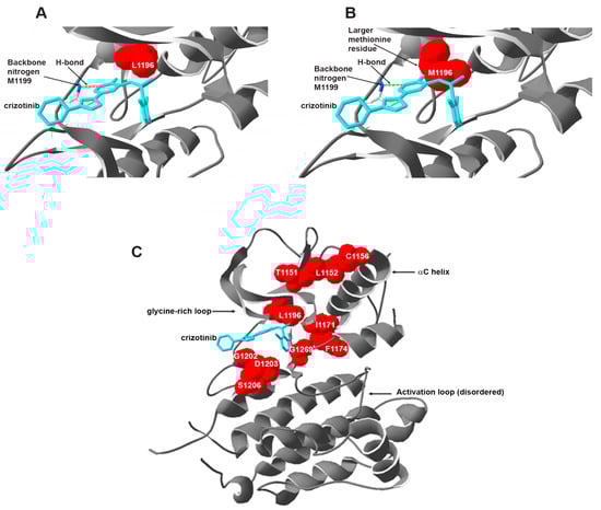 - Sasaki, T.; Okuda, K.; Zheng, W.; Butrynski, J.; Capelletti, M.; Wang, L.; Gray, N.S.; Wilner, K.; Christensen, J.G.; Demetri, G.; et al. The neuroblastoma-associated f1174l ALK mutation causes resistance to an ALK kinase inhibitor in ALK-translocated cancers. Cancer Res. 2010, 70, 10038–10043. [Google Scholar] [CrossRef] [PubMed]