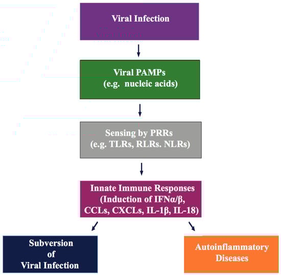 - Brennan, K.; Bowie, A.G. Activation of host pattern recognition receptors by viruses. Curr. Opin. Microbial. 2010, 13, 503–507. [Google Scholar] [CrossRef] [PubMed]