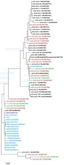 - Kumar, S.; Stecher, G.; Tamura, K. Mega7: Molecular evolutionary genetics analysis version 7.0 for bigger datasets. Mol. Biol. Evolut. 2016, 33, 1870–1874. [Google Scholar] [CrossRef] [PubMed]