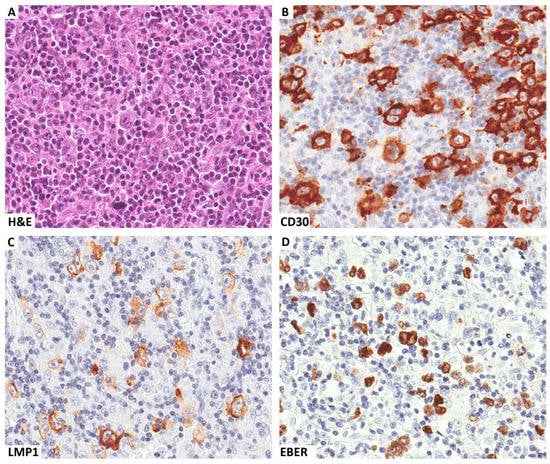 LMP-1 may directly contribute to the generation of an immunosuppressive microenvironment through its ability to induce/enhance the production of immunosuppressive cytokines such as IL-6, IL-8, and IL-10 [21,22,23]. In addition, the inflammatory milieu of EBV-positive cHL is enriched in histiocytes, dendritic cells and endothelial cells.