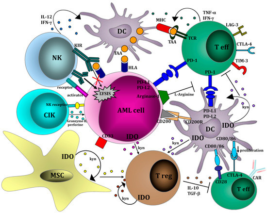 - Austin, R.; Smyth, M.J.; Lane, S.W. Harnessing the immune system in acute myeloid leukemia. Crit. Rev. Oncol. Hematol. 2016, 103, 62–77. [Google Scholar] [CrossRef] [PubMed]