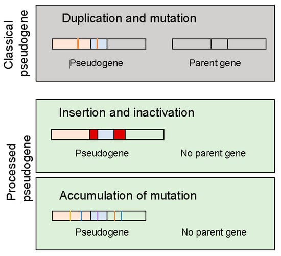 - Balakirev, E.S.; Ayala, F.J. Pseudogenes: Are they “junk” or functional DNA? Annu. Rev. Genet. 2003, 37, 123–151. [Google Scholar] [CrossRef] [PubMed]