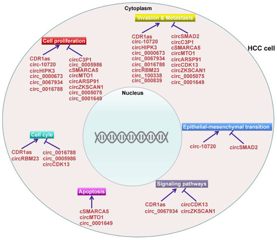 Overview of deregulated circRNAs in hepatocellular carcinoma (HCC).