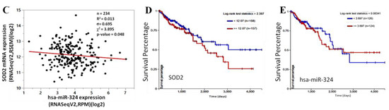 2.3. Aberrant Expression of SOD2 Correlates with Disease Progression and SOD2-Induced Down-Regulation of hsa-miR-324 Facilitates Poor Prognosis