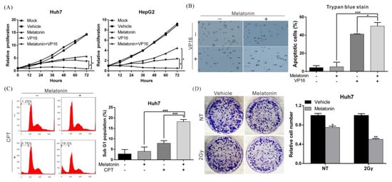 2.2. Melatonin Increases the Sensitivity of HCC Cells to Chemotherapy and Radiotherapy