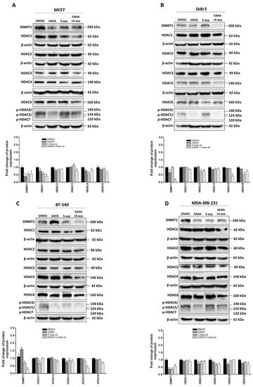 2.2. Effect of SAHA and/or 5-aza-dc on the Expression of Epigenetic Modulators