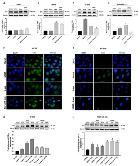 2.3. Effect of SAHA and/or 5-aza-dc on the Expression Level of ERα