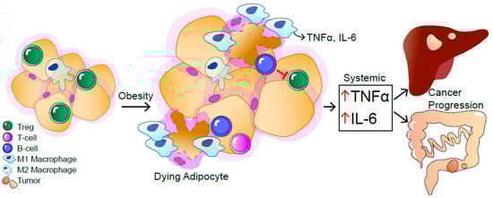 Obesity-Induced TNFα and IL-6 Signaling: The Missing Link between Obesity and Inflammation—Driven Liver and Colorectal Cancers