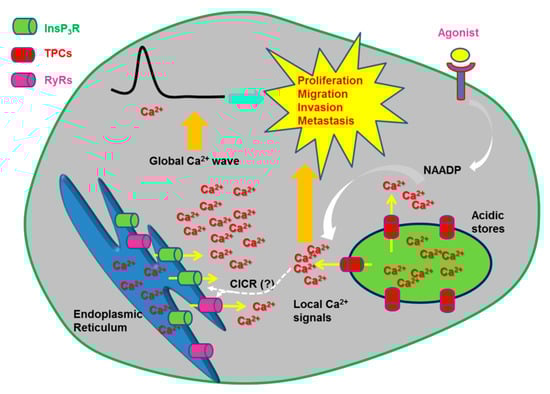 endolysosomal Ca2+ signaling; cancer; TRPML1; TPCs; NAADP; proliferation; metastasis; angiogenesis 1. Introduction