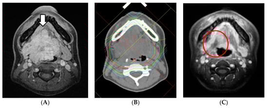 - Nakamura, T.; Fuwa, N.; Takayama, K.; Tomoda, T.; Takada, A.; Makita, C.; Shiomi, M.; Yokouchi, J.; Watanabe, K. A new method MRI to delineate areas of head and neck cancer targeted by intra-arterial infusion via a superficial temporal artery. Oral Oncol. 2011, 47, 387–390. [Google Scholar] [CrossRef] [PubMed]