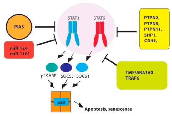 4. Tumor Suppressor Functions and Negative Regulation of STAT3/5 Signaling