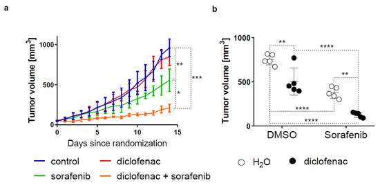 2.5. Diclofenac Potentiates the Anticancer Efficacy of Sorafenib In Vivo