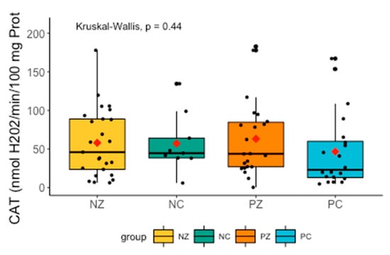 There were no significant differences in CAT between the examined groups (Figure 5).
