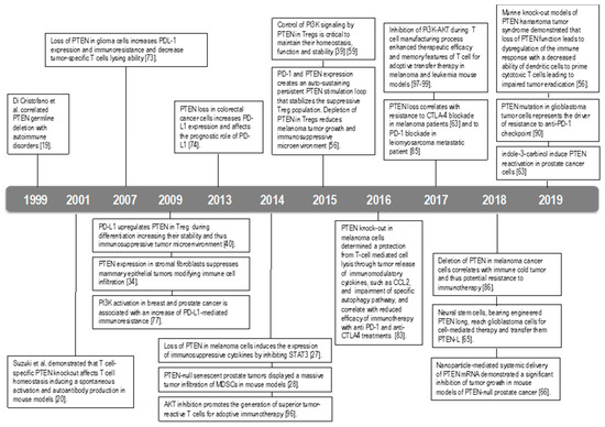 Timeline of the principal findings on PTEN role in immunity.
