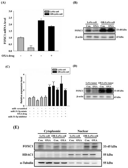 - Han, B.; Bhowmick, N.; Qu, Y.; Chung, S.; Giuliano, A.E.; Cui, X. FOXC1: An emerging marker and therapeutic target for cancer. Oncogene 2017, 36, 3957–3963. [Google Scholar] [CrossRef]