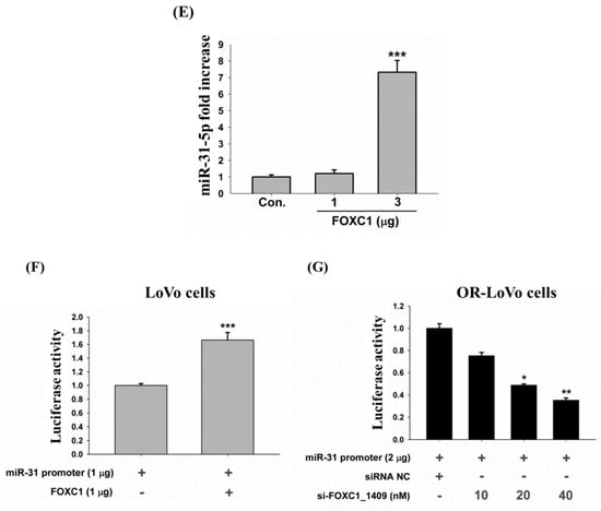 2.7. Binding of the FOXC1 Transcription Factor to the miR-31 Promoter Induces High miR-31-5p Expression