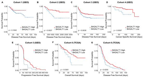 3.2. Downregulated Expression of B4GALT1 is Associated with Poor Survival in Primary Tumors of CRC in GEO and TCGA Dataset