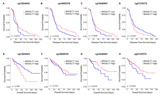 3.3. Hypermethylation of B4GALT1 is Associated with Poor Survival in Primary Tumors of CRC in GEO and TCGA Datasets