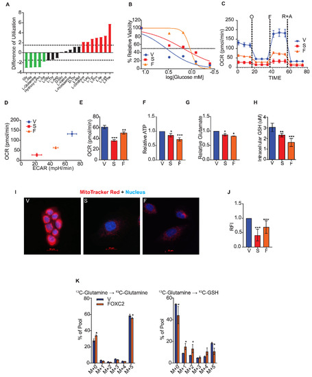 2.4. Inhibition of FOXC2 Enhances GLS2 Expression and Glutamine Utilization