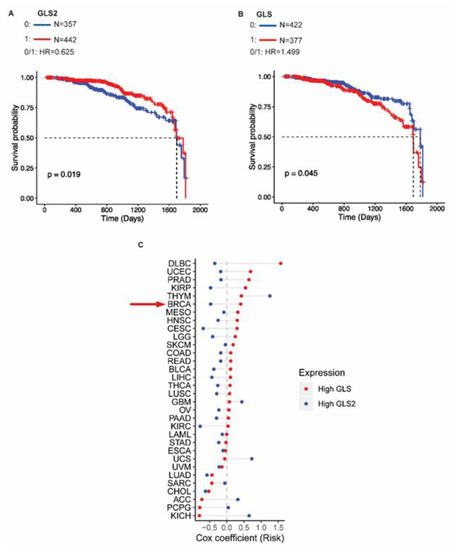 2.5. GLS2 Expression Correlates with Survival of Breast Cancer Patients