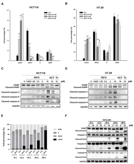 2.2. MPT0G612 Induces Cell Cycle Accumulation at subG1 Phase and Apoptosis in CRC Cells
