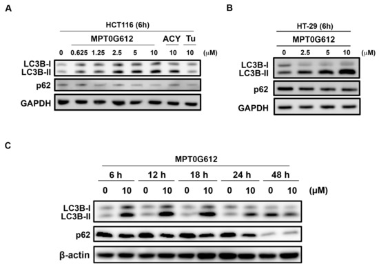 2.3. Effects of MPT0G612 on Autophagy in HCT116 Cells