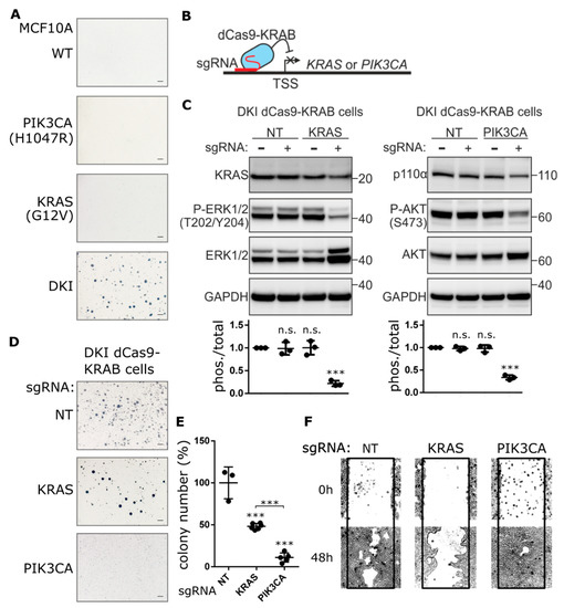 - Wang, G.M.; Wong, H.Y.; Konishi, H.; Blair, B.G.; Abukhdeir, A.M.; Gustin, J.P.; Rosen, D.M.; Denmeade, S.R.; Rasheed, Z.; Matsui, W.; et al. Single copies of mutant KRAS and mutant PIK3CA cooperate in immortalized human epithelial cells to induce tumor formation. Cancer Res. 2013, 73, 3248–3261. [Google Scholar] [CrossRef]