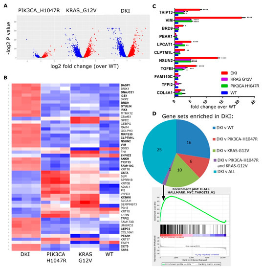 2.2. KRAS and PIK3CA Oncogenes Cooperate to Generate a Transcriptional Signature Enriched for EMT, Cell Cycle and MYC Target Genes