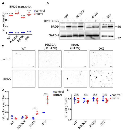 2.3. Oncogenic PIK3CA and KRAS Induce the Expression of the Bromodomain-Containing Protein BRD9