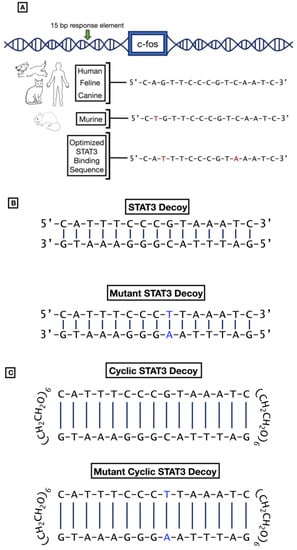 - Lee, D.S.; O’Keefe, R.A.; Ha, P.K.; Grandis, J.R.; Johnson, D.E. Biochemical Properties of a Decoy Oligodeoxynucleotide Inhibitor of STAT3 Transcription Factor. Int. J. Mol. Sci. 2018, 19, 1608. [Google Scholar] [CrossRef]