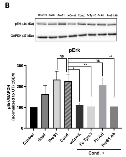 2.3. In Cells Expressing Tyro3 as Sole TAM Receptor, the ProS1-Tyro3-Erk Signalling Axis Prevails but Is Diversified