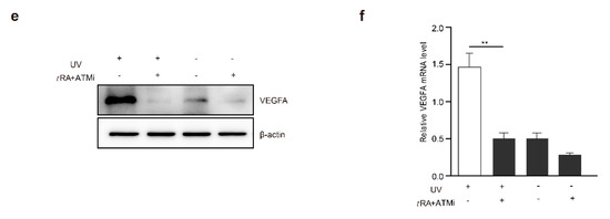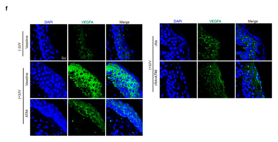 2.3. ATM Inhibitor Enhanced the Effect of tRA on the Protection of Mouse Skin from UV-Induced VEGFA Expression