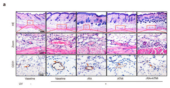 2.4. The ATM Inhibitor Improved the Efficiency of tRA Against Pathological Skin Angiogenesis Caused by UV Irradiation in Mice