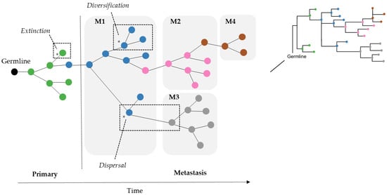 - Naxerova, K.; Jain, R.K. Using tumour phylogenetics to identify the roots of metastasis in humans. Nat. Rev. Clin. Oncol. 2015, 12, 258–272. [Google Scholar] [CrossRef]