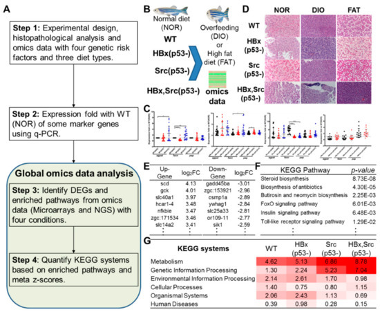 APA StyleYang, W.-Y., Rao, P.-S., Luo, Y.-C., Lin, H.-K., Huang, S.-H., Yang, J.-M., & Yuh, C.-H. (2019). Omics-based Investigation of Diet-induced Obesity Synergized with HBx, Src, and p53 Mutation Accelerating Hepatocarcinogenesis in Zebrafish Model. Cancers, 11(12), 1899. https://doi.org/10.3390/cancers11121899