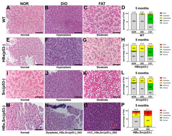 - Lu, J.W.; Yang, W.Y.; Tsai, S.M.; Lin, Y.M.; Chang, P.H.; Chen, J.R.; Wang, H.D.; Wu, J.L.; Jin, S.L.; Yuh, C.H. Liver-specific expressions of HBx and src in the p53 mutant trigger hepatocarcinogenesis in zebrafish. PLoS ONE 2013, 8, e76951. [Google Scholar] [CrossRef]