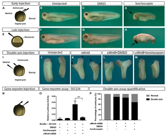 - Larabell, C.A.; Torres, M.; Rowning, B.A.; Yost, C.; Miller, J.R.; Wu, M.; Kimelman, D.; Moon, R.T. Establishment of the Dorso-ventral Axis in Xenopus Embryos Is Presaged by Early Asymmetries in β-Catenin That Are Modulated by the Wnt Signaling Pathway. J. Cell Biol. 1997, 136, 1123–1136. [Google Scholar] [CrossRef] [PubMed]
