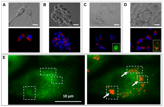Cells were imaged with a wide field Leica DM IRB microscope (Leica Microsystems, Wetzlar, Germany) coupled to a CoolSNAP HQ camera (Roper Scientific, Photometrics, Tucson, AZ, USA), using the following filter sets: for the GFP λEx = 480/40 nm and λEm = 527/30 nm, for the RB-nanochains-COOH λEx = 560/40 nm and λEm = 630/75 nm, and for Hoechst stain λEx = 360/40 and λEm > 425 nm.