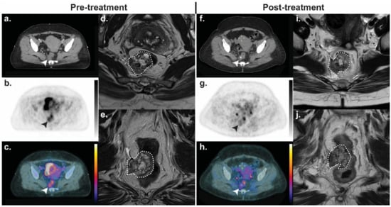 - Joye, I.; Deroose, C.M.; Vandecaveye, V.; Haustermans, K. The role of diffusion-weighted MRI and 18F-FDG PET/CT in the prediction of pathologic complete response after radiochemotherapy for rectal cancer: A systematic review. Radiother. Oncol. 2014, 113, 158–165. [Google Scholar] [CrossRef] [PubMed]
