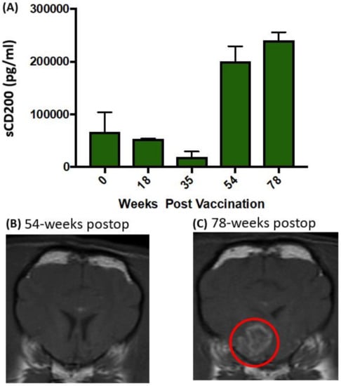 Olin, M.R.; Ampudia-Mesias, E.; Pennell, C.A.; Sarver, A.; Chen, C.C.; Moertel, C.L.; Hunt, M.A.; Pluhar, G.E. Treatment Combining CD200 Immune Checkpoint Inhibitor and Tumor-Lysate Vaccination after Surgery for Pet Dogs with High-Grade Glioma. Cancers 2019, 11, 137. https://doi.org/10.3390/cancers11020137