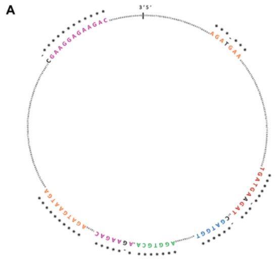 - Memczak, S.; Jens, M.; Elefsinioti, A.; Torti, F.; Krueger, J.; Rybak, A.; Maier, L.; Mackowiak, S.D.; Gregersen, L.H.; Munschauer, M.; et al. Circular RNAs are a large class of animal RNAs with regulatory potency. Nature 2013, 495, 333–338. [Google Scholar] [CrossRef]