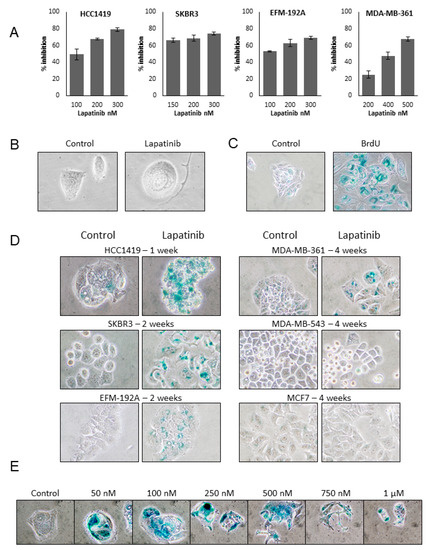 2.1. Lapatinib Induces Senescence in HER2 Positive Breast Cancer Cell Lines