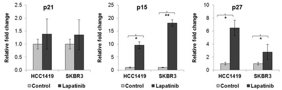 2.2. Lapatinib-Induced Senescence Is Associated with Increased p15 and p27 Expression