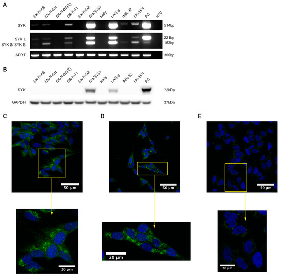 2.2. SYK mRNA and to a Lesser Extend SYK Protein Are Present in Neuroblastoma Cell Lines