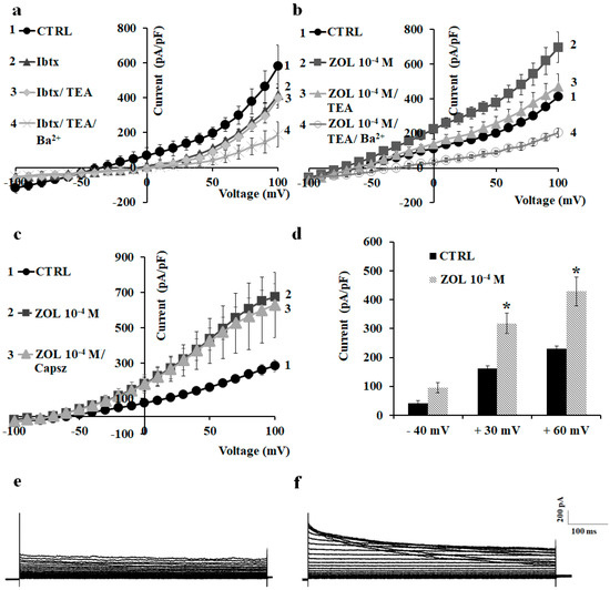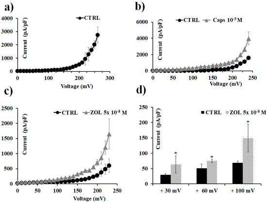 2.5. ZOL Effects on Oocytes Transfected with TRPV1 Channel Clone