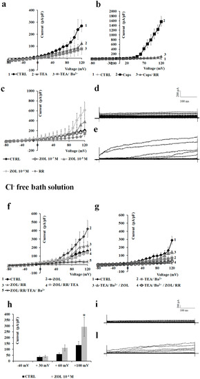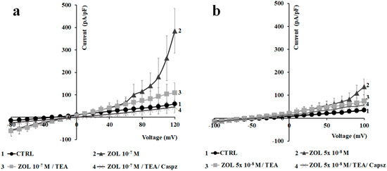 2.2. Characterization of Cation Channel Currents of RAW264.7 and MC3T3-E1 Cell Lines in Controls and in the Presence of ZOL